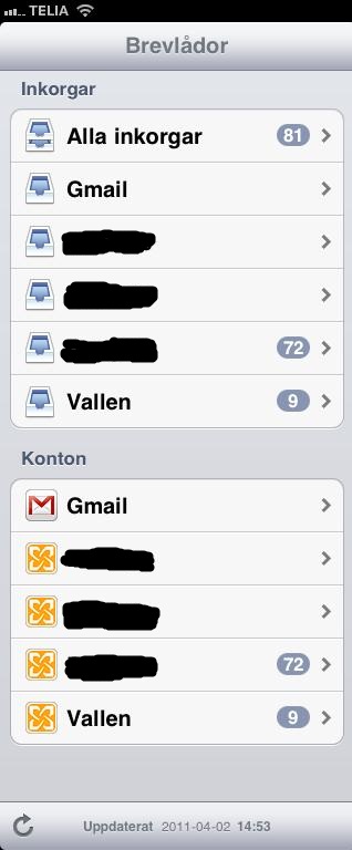 Jag jobbar som tekniker och har ett par olika mailadresser som jag håller koll på löpande och det är inga problem att hantera flera olika mailkonton nästan oavsett vilka konton det rör sig om. Själv använder jag MS Exchange och Gmail. Man kan välja hur inkorgen i mailen ska se ut. Jag använder mest att se alla inkorgar i en sammanslagen inkorg.