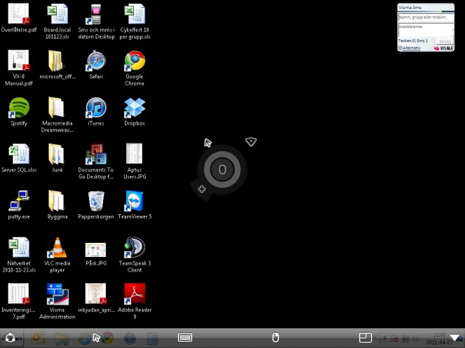 Efter inloggning har jag tillgång till mitt vanliga skrivbord och kan jobba som vanligt. Lägg märke till den extra verktygsraden längst ner där man trollar fram skrivbord, multifunktionsmuspekare och andra verktyg. Självklart kan man välja att ha ”padden” i horisontellt läge istället, det är en smaksak!